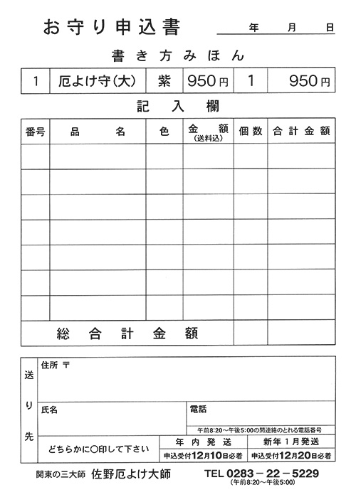 お守り申込書
