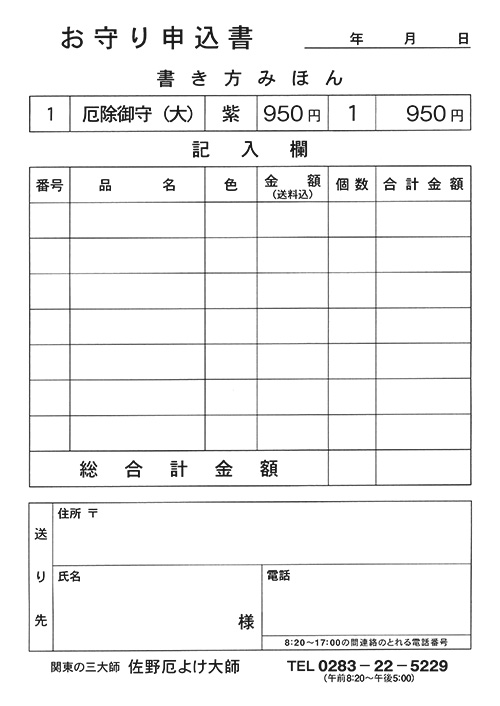 お守り申込書